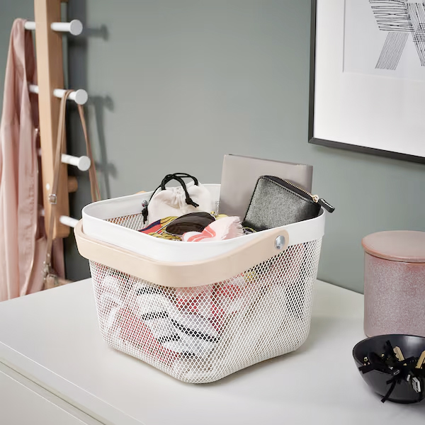 철제 바구니에 손잡이가 달려 있어서 이동식 수납에 딱이에요. 양말, 화장품, 주방 소품, 과일 바구니 등 활용도가 높고, 예뻐서 그냥 두기만 해도 인테리어 효과가 있는 아이템이죠. 가격도 부담 없고, 사이즈와 컬러가 다양해서 고르기 즐거워요!