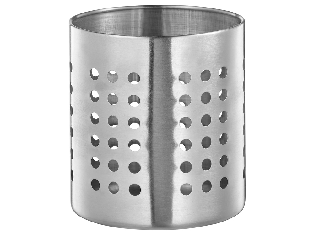 구멍이 뚫려 있어 물 빠짐도 좋은 키친툴 통으로 국자, 뒤집개, 젓가락 등 길쭉한 도구 정리에 제격이에요. 아무래도 개수대 옆에는 젖은 식기류가 많기 때문에 더욱 더 잘 사용할 수 있을 제품이고, 테이블 위에 두기만 해도 정돈된 느낌을 주는 스테인리스 스틸이랍니다.