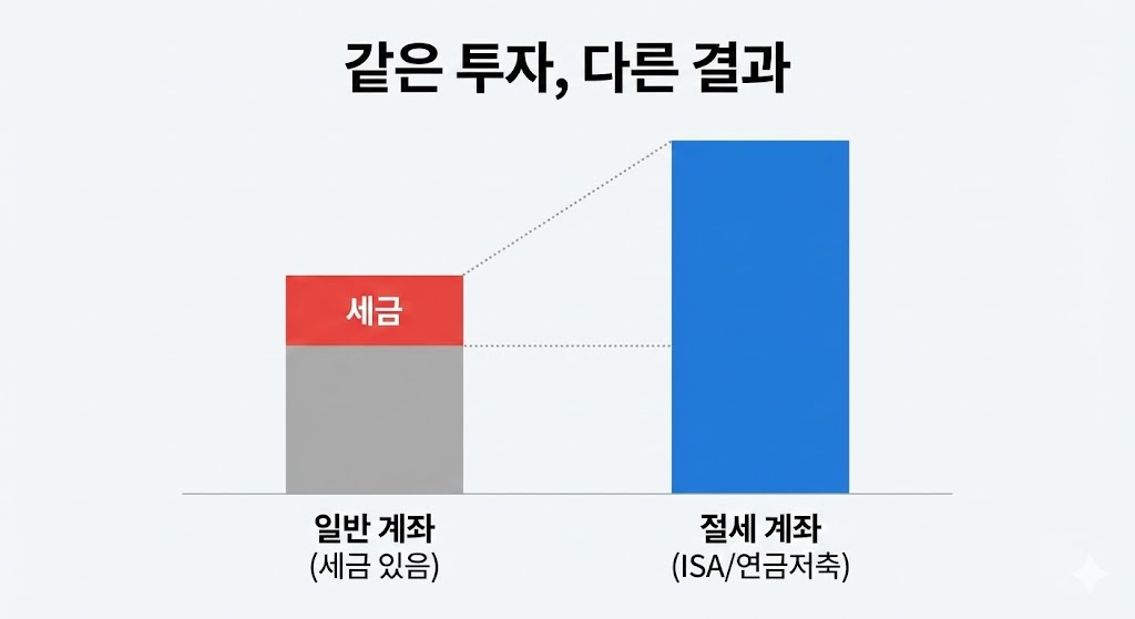 똑같은 'TIGER 미국S&P500' ETF를 사더라도, 일반 계좌에서 사면 세금 때문에 수익이 줄어들지만, 이 절세 계좌에서 사면 세금을 아낀 만큼 내 수익이 늘어납니다.